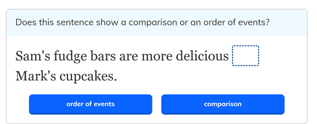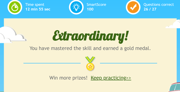 IXL has streamlined a rather complex lesson that would have been planned by researching the lesson content from different sources. The choice of sentences and sentence fragments would have also taken more than three hours to construct. The students would have needed to hand-write the answers, and the teacher would collect the scripts, grade them, and provide feedback to the students in another class session. This IXL lesson takes approximately 30 minutes. IXL’s process is automated, with sentences generated as the student answers. The teacher’s feedback is also immediate, direct, and in real-time.